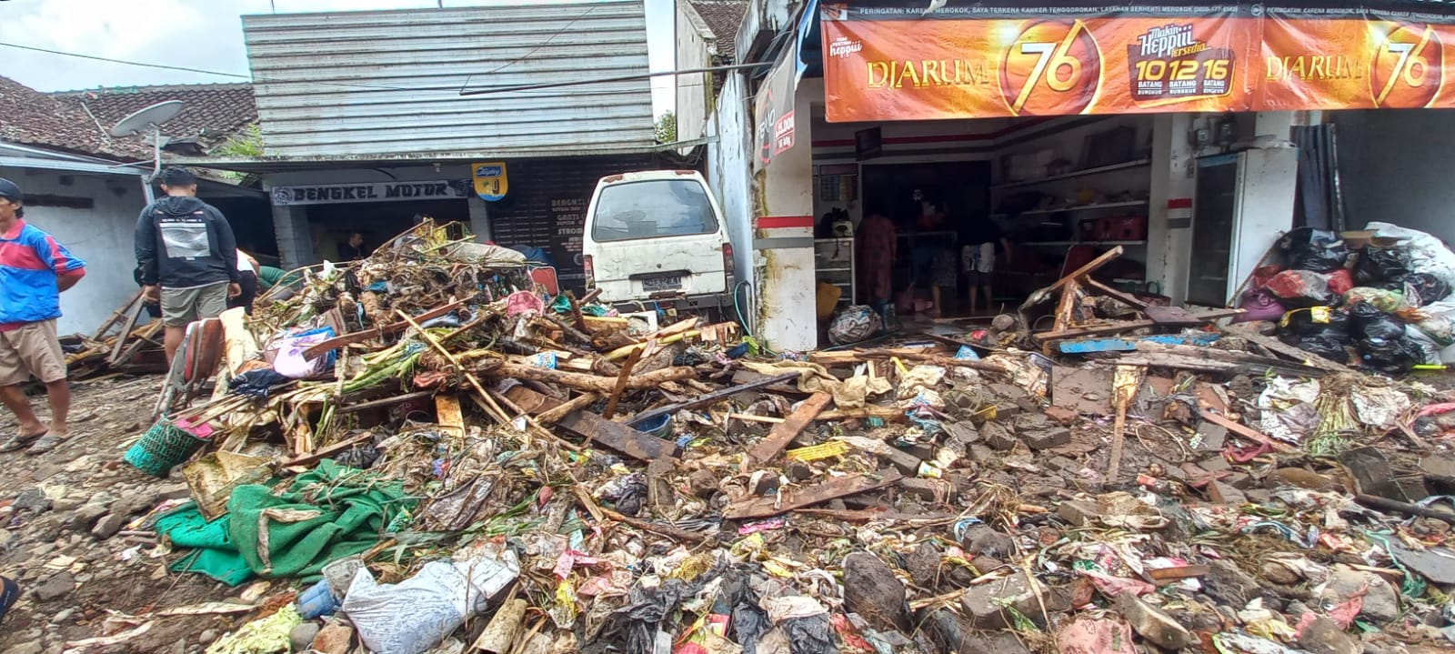 Banjir bandang menerjang enam desa di Kecamatan Kalibaru, Banyuwangi, Kamis (3/11/2022) lalu. Kondisi terparah dialami Desa Kalibaru Wetan. Sebanyak 63 rumah rusak diterjang banjir. Dari jumlah ini, 35 diantaranya hanyut. Puluhan warga mengungsi akibat kehilangan tempat tinggal. (udi)