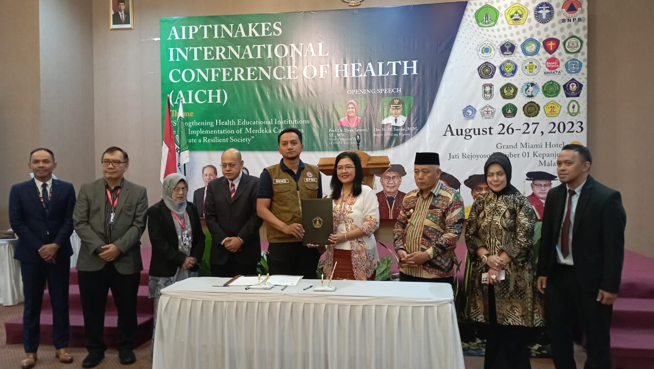 Malang, (pawartajatim.com) – Asosiasi Institusi Perguruan Tinggi Tenaga Kesehatan Jawa Timur (Aiptinakes Jatim) menggelar Aiptinakes International Conference of Health (AICH 2023). Selain berkesempatan menjalin kerja sama internasional, konferensi kesehatan internasional ini juga bertukar keilmuan dan kolaborasi riset internasional.