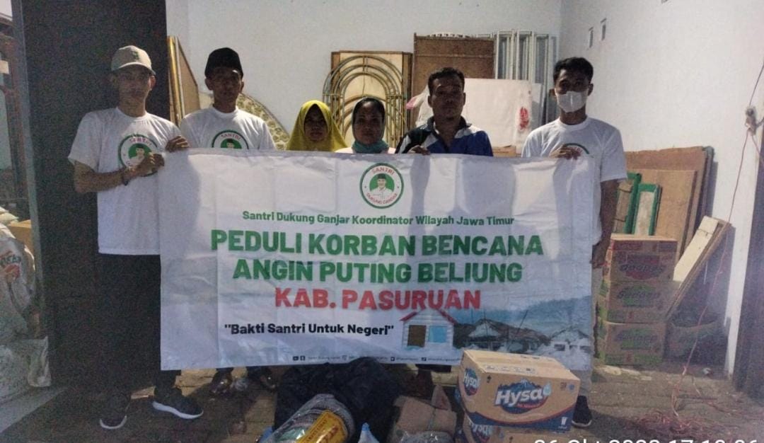Pasuruan, (pawartajatim.com) – Bantuan kemanusian mulai mengalir untuk korban bencana alam angin puting beliung di Dusun Montok, Desa Candibinangun, Kecamatan Sukorejo, Kabupaten Pasuruan, Jawa Timur/Jatim. Salah satunya datang dari relawan Santri Dukung Ganjar (SDG). Mereka telah bergerak ke beberapa lokasi bencana dan mendistribusikan bantuan sandang hingga pangan kepada warga terdampak.