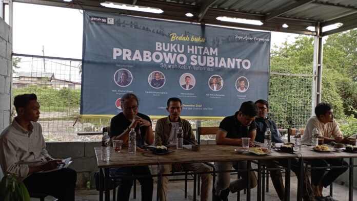 Hal itu terungkap saat diskusi dan bedah buku ‘Buku Hitam Prabowo Subianto’ karya Buya Azwar Furgudyama di Surabaya, yang menghadirkan Aktivis 98 dan Penggerak Sosial Dandik Katjasungkana, pegiat HAM Firmansyah, Pegiat Pemilu dan Demokrasi Hasnu Ibrahim, Presiden BEM ITS Agil Wahyu Ramadhan, serta Pengamat Politik Mohammad Khoirul Umam.