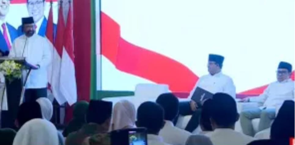 Hadir Ketua Umum Partai NasDem, Surya Paloh, dan Ketua Umum PKB, Muhaimin Iskandar, serta Capres Anies Baswedan. Mereka kompak memakai setelan merah putih dan kopiah hitam tanpa atribut partai politik.