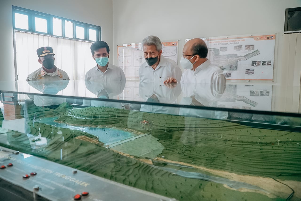 Dalam kesempatan ini, Wagub Emil didampingi langsung Bupati Trenggalek Nur Arifin, Widyaiswara Ahli Utama sekaligus Wakil Menteri Pekerjaan Umum RI ke 2 Achmad Hermanto Dardak dan Kapusbangkom JPW Kementerian PUPR RI Rezeki Peranginangin.