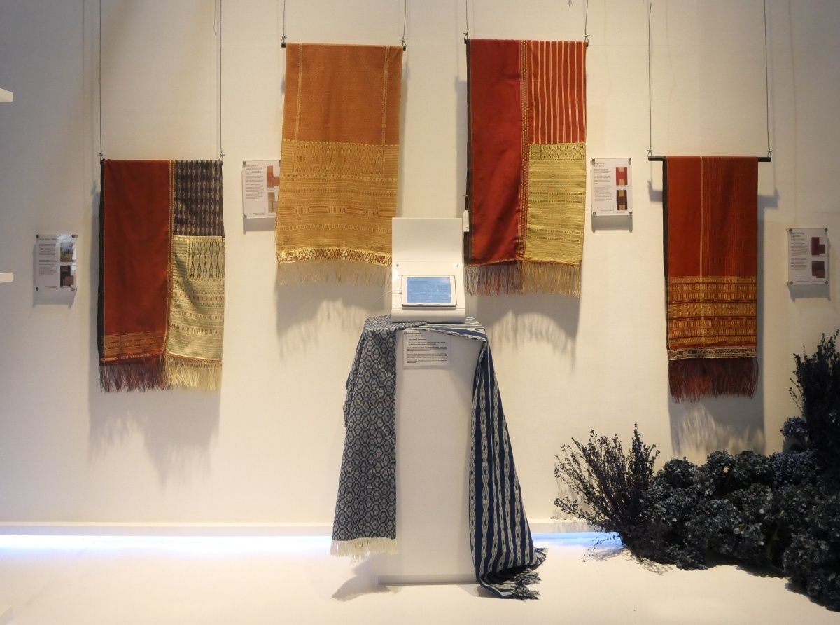 Beberapa koleksi mahakarya kain tenun Batak yang di pamerkan di JCC Hall A sejak 9-13 Februari 2022. (foto/ist)