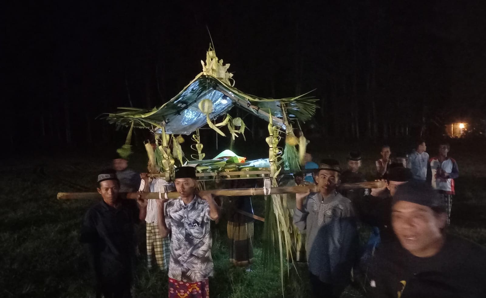 Warga juga menghiasnya dengan beragam hasil bumi. Arak-arakan tumpeng diiringi dengan alunan musik hadrah. Warga ikut berbondong-bondong mengiringi di belakangnya. Seluruhnya terlihat kompak, gembira. Usai diarak, seluruh tumpeng dikumpulkan di lapangan dusun.