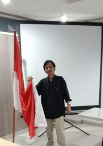 Cak Tarmudji, memegang bendera merah putih. (foto/ist)