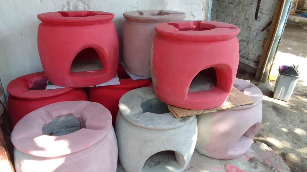 Tungku beton terbuat dari bahan semen. Agar kuat, di dalamnya diberikan rangka besi. Tungku yang bisa dipindah-pindah ini mampu menahan hingga 15 kilogram beras. Dahulu, tungku dibuat dari tanah liat. Namun, kurang kokoh. Agar menarik, tungku diberikan warna merah. Dalam sehari, pria ini bisa memproduki hingga 6 buah tungku. Harganya dibandrol Rp100.000 per biji. Meski permintaan naik, perajin tungku belum menaikkan harga. “ Agar kuat, tungku ini harus ditunggu hingga sebulan,” kata pria yang mulai membuat tungku sejak tahun 2003 ini.