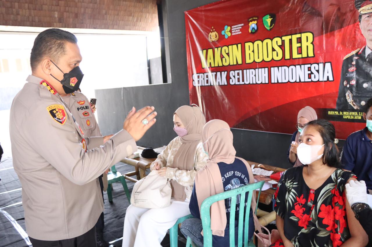 Kapolresta Banyuwangi Kombes Pol Nasrun Pasaribu memantau vaksinasi booster, Rabu (30/3). (foto/udi)