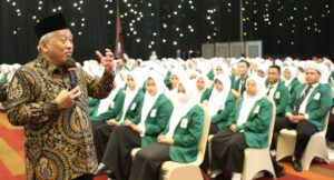 Surabaya, (pawartajatim.com) – Menteri Pendidikan dan Kebudayaan (Mendikbud) periode 2010-2014, Prof Dr Ir Mohammad Nuh DEA, mengajak 2.154 mahasiswa baru (maba) Universitas Nahdlatul Ulama Surabaya (Unusa) untuk menanamkan selfconfidence (rasa percaya diri) dan optimisme. Dua cara tersebut yang dibutuhkan untuk menyongsong generasi emas 2045 mendatang.