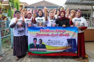 Batu, (pawartajatim.com) – Guna mendorong kreativitas tanpa batas kaum perempuan, Mak Ganjar menggelar pelatihan kreasi souvenir dari akrilik kepada emak-emak di Jalan Pawukir, Desa Sumberejo, Kecamatan Batu, Kota Batu, Jawa Timur/Jatim.