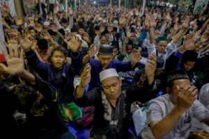 Sidoarjo, (pawartajatim.com) – Lantunan selawat dan doa bersama untuk Indonesia aman, damai, dan sejahtera menggema di Pondok Pesantren Manbaul Qur’an, Porong, Sidoarjo Rabu (12/10). Acara yang diinisiasi Santri Dukung Ganjar (SDG) ini dihadiri ribuan santri, kiai muda, ustadz, pengasuh pondok pesantren, dan masyarakat sekitar.