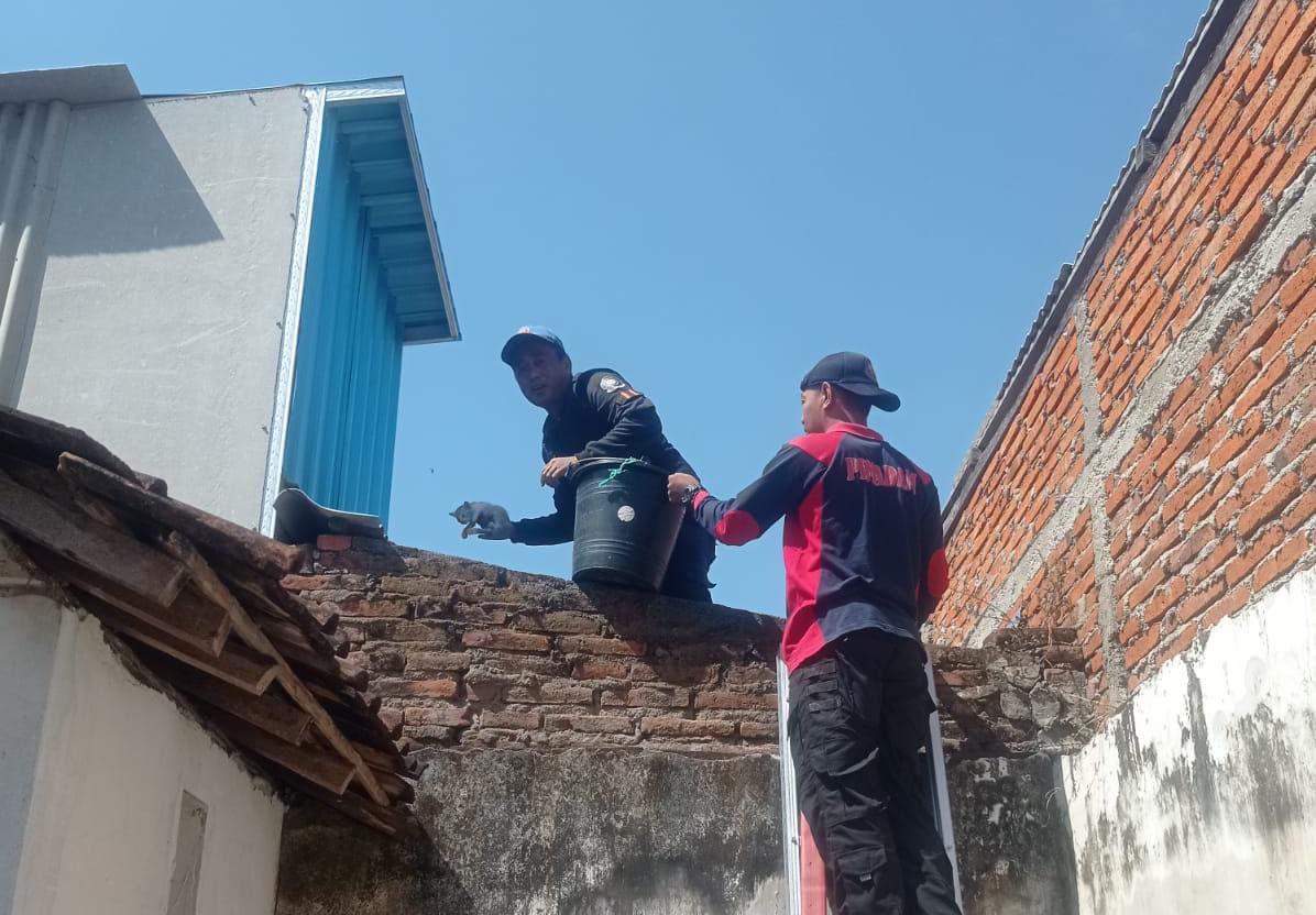 Bermula dari laporan dari warga, petugas Damkar bergerak ke lokasi.  Kucing yang terjebak itu milik Ika Widiyanti (43), warga Perumahan Banyuwangi Baru, Kelurahan Penganjuran, Kecamatan Banyuwangi.