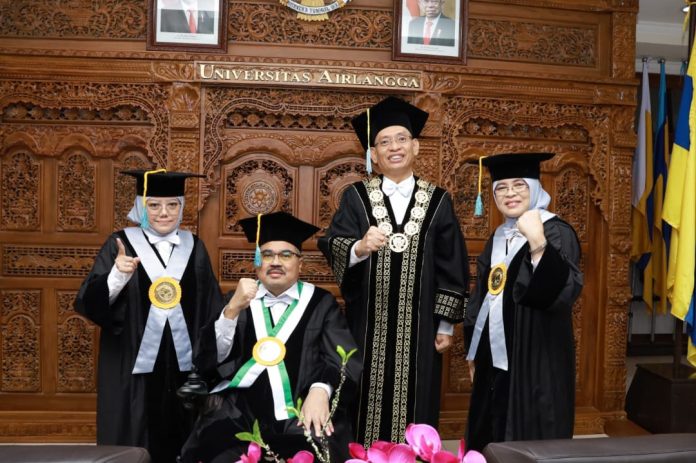 Surabaya, (pawartajatim.com) – Rektor Universitas Airlangga (Unair), Prof Mohammad Nasih, kembali mengukuhkan enam guru besar baru, di Aula Garuda Mukti Unair Kampus C Mulyorejo Surabaya, Kamis (11/5). Dengan bertambahnya guru besar, Prof Nasih, ingin atmosfer pendidikan di lingkungan kampus semakin bagus dan menjadikan Unair sebagai perguruan tinggi yang komprehensif.