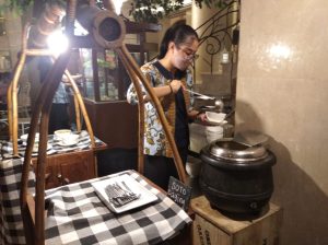 Salah seorang pramusaji soto Madura saat Festival Dapoer Nusantara di Hotel Garden Palace Surabaya Sabtu (10/9) malam. (foto/bw)