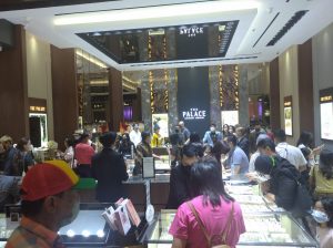Suasana pembukaan The Palace Jeweler di Trans Icon Mall Surabaya Sabtu (27/8) yang tak ingin ketinggalan memuaskan pelanggan melalui koleksi perhiasan berlian dan emas yang berkualitas. (foto/bw)
