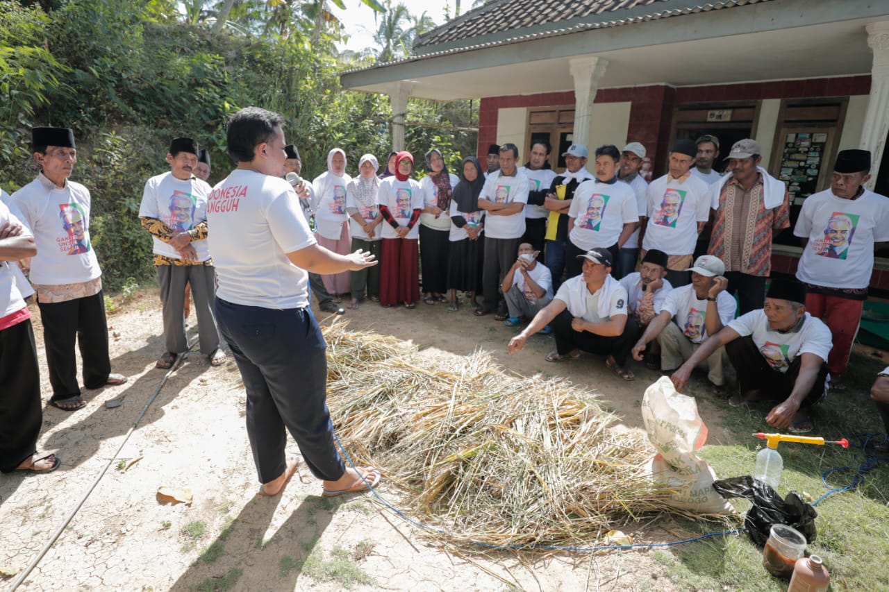 Dalam kesempatan tersebut, Ganjar Creasi turut memberikan bantuan kepada warga Desa Girimulyo, berupa mesin semprot pertanian. (rid)