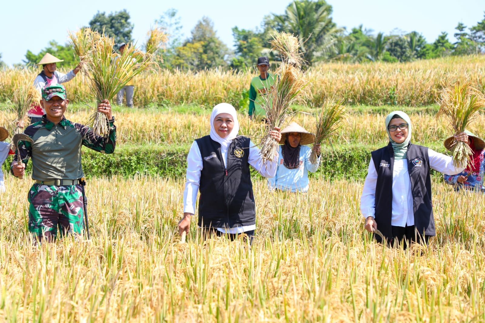 Blitar, (pawartajatim.com) – Panen raya padi varietas Inpari 32 di Desa Soso, Kecamatan Gandusari, Kabupaten Blitar Sabtu (27/5). Yang menarik, varietas Inpari 32 yang ditanam di lahan terasering seluas 50 Ha ini memiliki luas hamparan panen 30 Ha dengan provitas 7- 8Â ton/Ha.