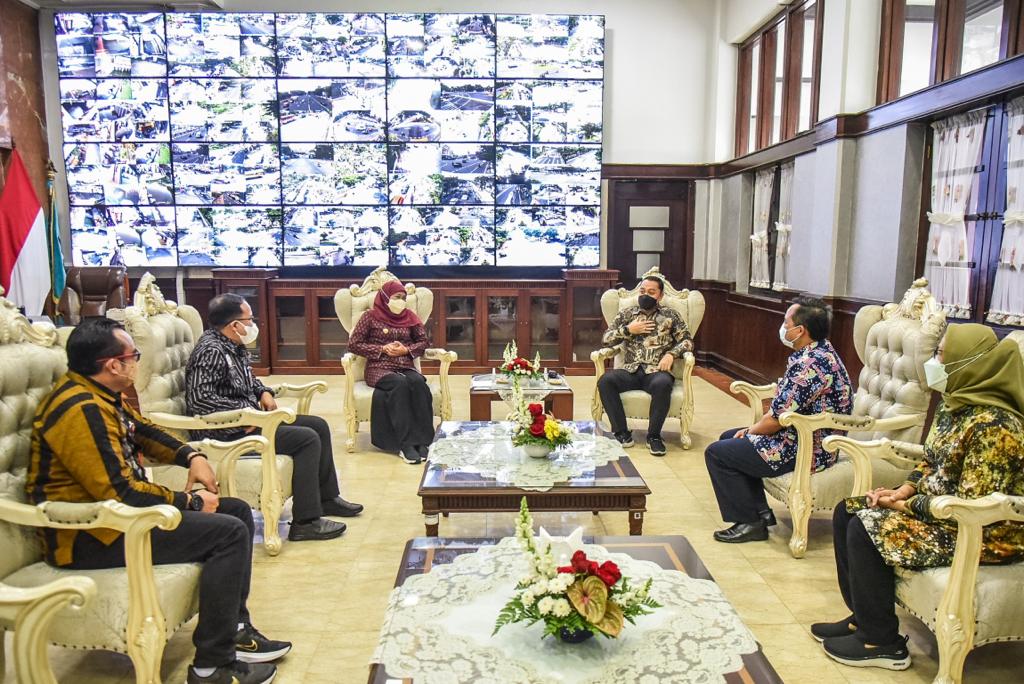 Gubernur Jawa Timur/Jatim, Khofifah Indar Parawansa (no 3 dari kiri), bersilaturahmi ke Wali Kota Surabaya, Eri Cahyadi (no 4 dari kiri) di Balai Kota, Jumat (8/4). (foto/ko)