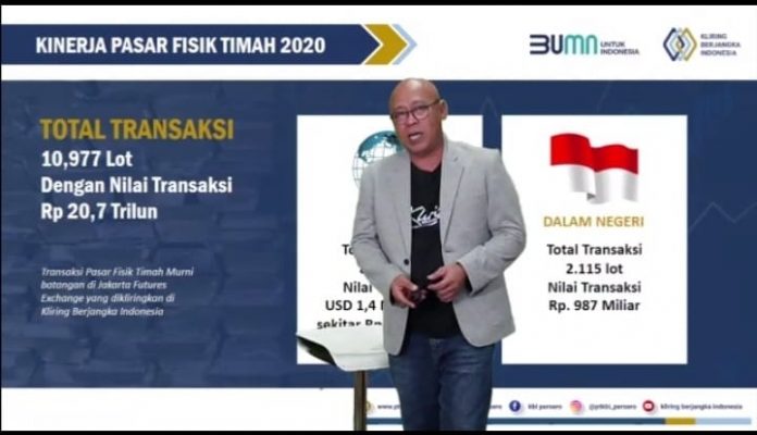 Dari total transaksi yang tersebut, di pasar fisik timah murni batangan untuk ekspor mencapai 8.862 Lot dengan nilai transaksi sebesar USD 1,4 miliar, atau sekitar Rp 19,7 triliun. Sedangkan dari Pasar Fisik Timah dalam negeri, sepanjang 2021 (Maret – Desember) transaksi mencapai 2.115 lot dengan nilai transaksi sebesar Rp 987 milliar.