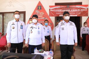 Kepala Kanwil Kemenkumham Jatim, Krismono (kiri) saat Refleksi Akhir Tahun 2021 di Surabaya Rabu (29/12). (foto/ist)