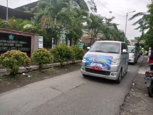 Mobil rombongan Ika Unair Sidoarjo saat tiba di Desa Sambibulu, Kecamatan Taman, Sidoarjo Jum’at (12/11). (foto/ist)