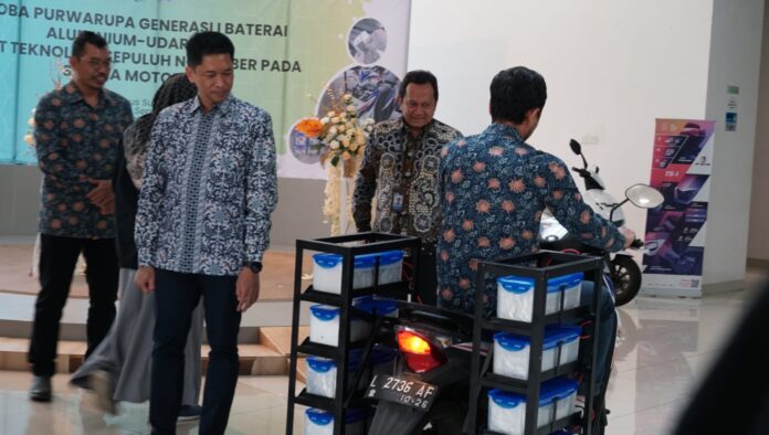 Surabaya, (pawartajatim.com) – Institut Teknologi Sepuluh Nopember (ITS) Surabaya melakukan uji coba aplikasi purwarupa generasi I Baterai Al-Udara ITS pada sepeda motor. Penelitian yang didukung Pertamina bersama Kedaireka Matching Fund ITS tersebut guna mendukung percepatan penggunaan Kendaraan Listrik Berbasis Baterai (KLBB).