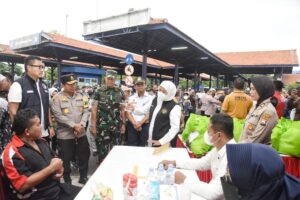 Surabaya, (pawartajatim.com) – Gubernur Jawa Timur/Jatim, Khofifah Indar Parawansa bersama Kapolda Jatim, Irjen Toni Harmanto dan Komandan Korem 084/Bhaskara Jaya Brigjen TNI Terry Tresna Purnama, meninjau kesiapan sejumlah titik yang akan menjadi pintu masuk bagi masyarakat saat momen Natal dan Tahun Baru/Nataru Sabtu (24/12). Sejumlah titik tersebut ialah Pelabuhan Tanjung Perak, Bandara Juanda, dan Terminal Purabaya menjelang Nataru 2022 .