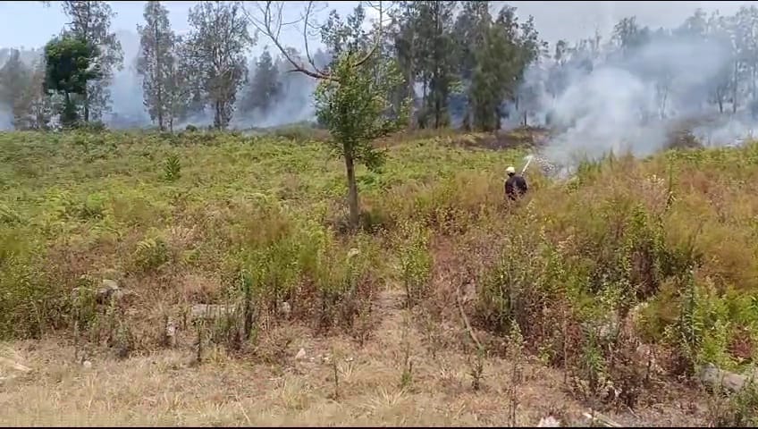 Api diketahui berkobar sejak, Senin (9/10/2023) malam. Kawasan yang terbakar ini terdiri dari tanaman alang-alang dan pakis yang mongering. Sehingga, dengan mudah tersulut api.