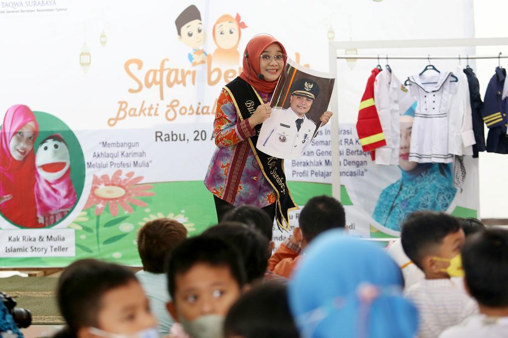 Bahkan pula mengajak mereka berinteraksi langsung lewat sejumlah permainan tebak foto dan profesi seragam kerja. Tak pelak, anak-anak pun tampak antusias mengikuti jalannya kelas inspirasi yang dibawakan langsung Bunda Rini Indriyani.