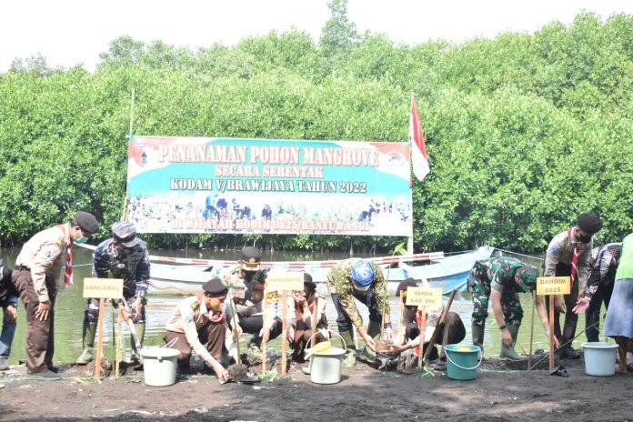 Aksi penanaman mangrove ini dipantau Pangdam V Brawijaya, Mayjen TNI Nurchahyanto melalui jaringan online. Menurutnya, kegiatan ini untuk membantu program pemerintah pusat menjaga kelestarian lingkungan.