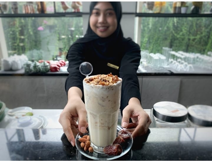 Surabaya, (pawartajatim.com) – Berasal dari Timur Tengah dengan bahan dasar buah kurma dan kacang almond, minuman Kurma Jallab sangat pas untuk dinikmati waktu berbuka puasa. “Berbukalah dengan yang manis, dari situlah menu Kurma Jallab ini kami ciptakan. Selain manis buah kurma, ada rasa gurih yang berasal dari kacang almond,” kata Food & Beverage Manager Hotel Swiss-Belinn Airport Surabaya, Andrian Wahyu Rimawan Sabtu (15/4).