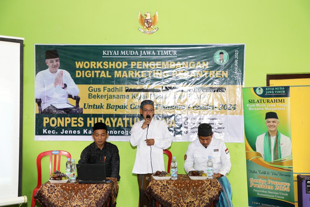 Ponorogo, (pawartajatim.com) – Jaringan Kiai Muda se-Jawa Timur pendukung Ganjar Pranowo bekerja sama dengan digital marketer salah satu bank swasta menghelat “Workshop Pengembangan Digital Marketing Pesantren”, di Pondok Pesantren Hudatul Muna, Desa Brotonegaran, Kecamatan Ponorogo, Kabupaten Ponorogo, Jawa Timur/Jatim, Minggu (15/1).