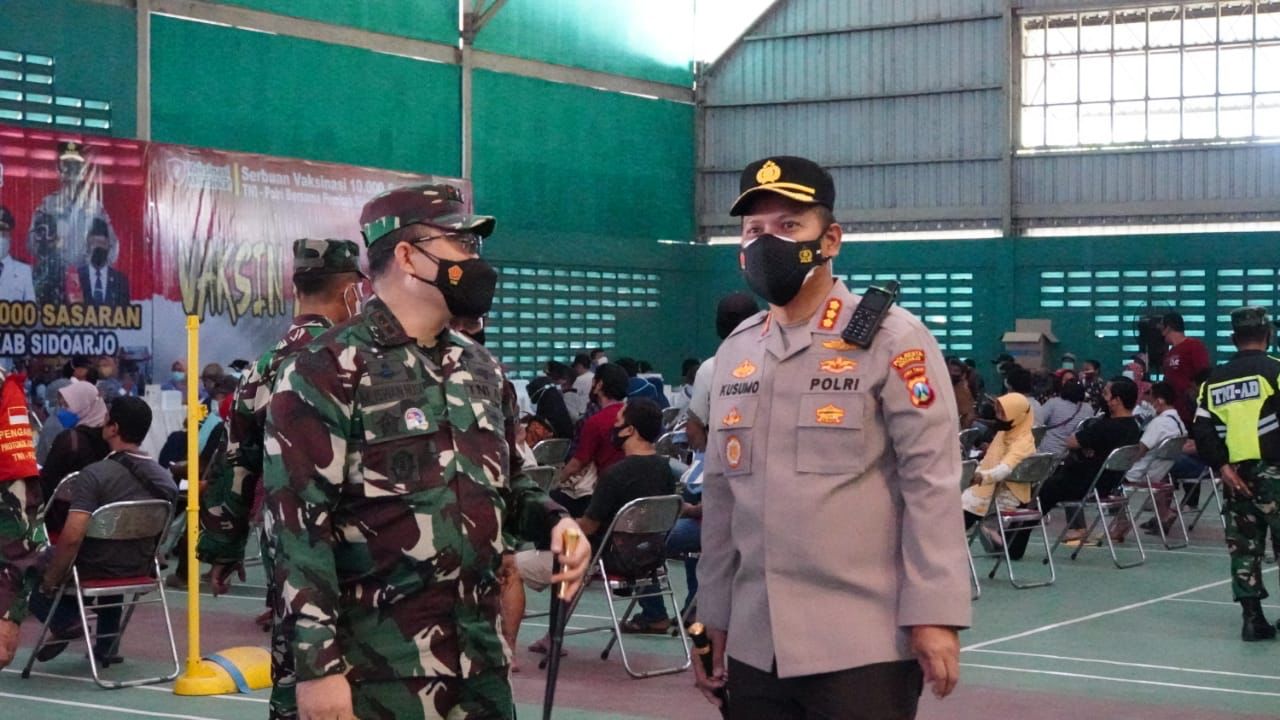 “Vaksinasi terus kami gencarkan bersama TNI, Pemkab Sidoarjo maupun pihak terkait lainnya. Terlebih sekarang polanya menyasar ke pelosok desa. Sehingga semakin luas wilayah sasaran vaksinasi. Silahkan ikuti program vaksinasi dan tetap patuhi protokol kesehatan, agar penyebaran Covid-19 terus terkendali,” jelas Kapolresta Sidoarjo Kombes Pol. Kusumo Wahyu Bintoro.
