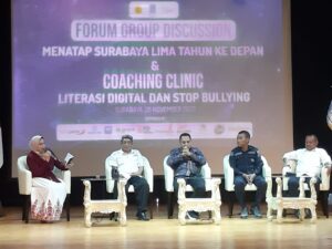 Untuk diketahui, FGD bertajuk “Menatap Surabaya 5 Tahun Ke Depan” dan coaching clinic “Literasi Digital dan Stop Bullying” didukung oleh PT Bank Pembangunan Daerah Jawa Timur Tbk (Bank Jatim), BRI Surabaya, Smartfren, Petrogas Jawa Timur, PT Panca Wira Usaha Jatim, PT Delta Artha Bahari Nusantara (DABN), Cleo, Coca Cola dan Telkomsel. (bw)