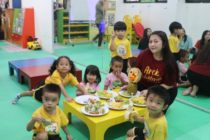 Surabaya, (pawartajatim.com) – Mahasiswa Fakultas Kedokteran Universitas Surabaya (FK Ubaya) mengkampanyekan pencegahan stunting melalui makanan bergizi untuk anak usia dini. Mahasiswa membagikan food art di Taman Penitipan Anak (TPA) Rumah Ceria Fakultas Psikologi Ubaya.