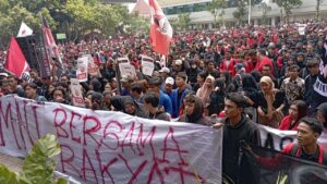 Surabaya, (pawartajatim.com) – Ribuan mahasiswa dari gabungan Badan Eksekutif Mahasiswa (BEM) se-Surabaya yang mengatasnamakan Gerakan Mahasiswa Selamatkan Demokrasi (Gemas’D) menggelar aksi mimbar bebas di lapangan utara Universitas 17 Agustus 1945 (Untag) Surabaya, Rabu (6/12/2023).