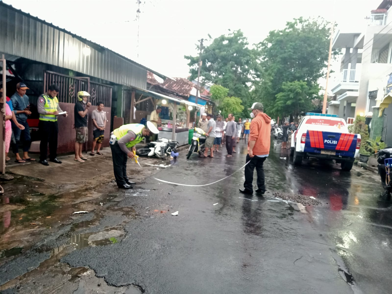Hasil olah TKP, suami istri pengendara motor melaju kencang dari arah Selatan ke Utara. Lalu, terjatuh akibat terpeleset. Kemudian, dihantam motor lain dari arah depan. (udi)