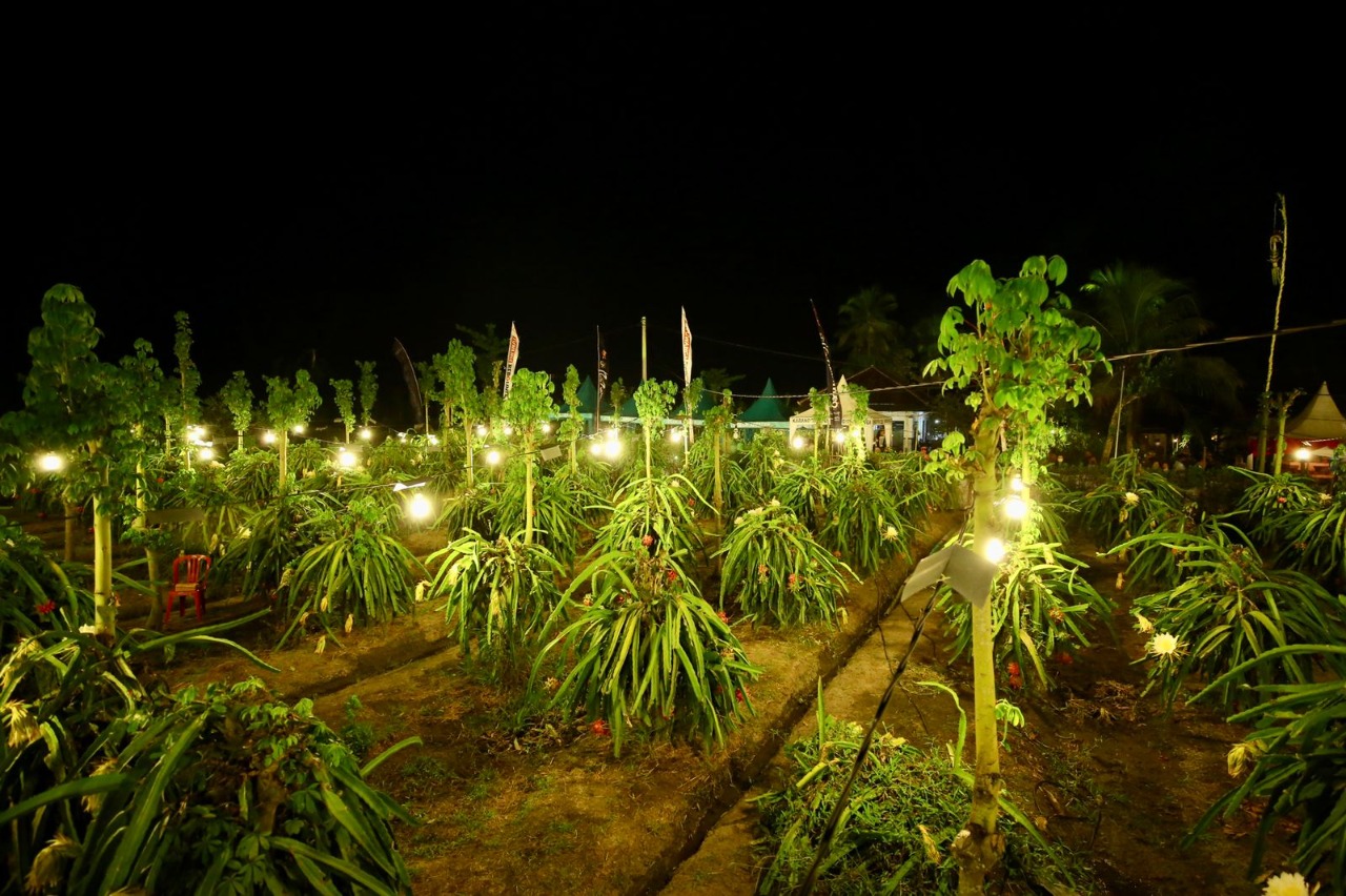 Hasilnya, buah naga bisa berbuah di luar musim. “Petani kita memang kreatif. Buah naga bisa dibuat panen sepanjang tahun dengan tehnologi lampu,” kata Bupati Banyuwangi Ipuk Fiestiandani, Rabu (23/2).