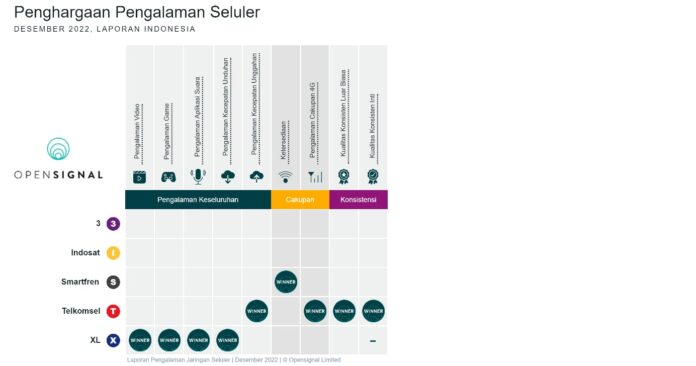 Dalam laporan itu, XL Axiata dinyatakan berhasil memenangi empat kategori dari sembilan kategori, meraih skor terbaik di antara sejumlah operator yang beroperasi di Indonesia. Keempat kategori tersebut yakni, pengalaman kecepatan unduh, pengalaman video, pengalaman gim, dan pengalaman aplikasi suara. Analisa kepada pelanggan seluler dilakukan oleh Opensignal selama 90 hari, mulai 1 Agustus 2022 hingga 29 Oktober 2022.