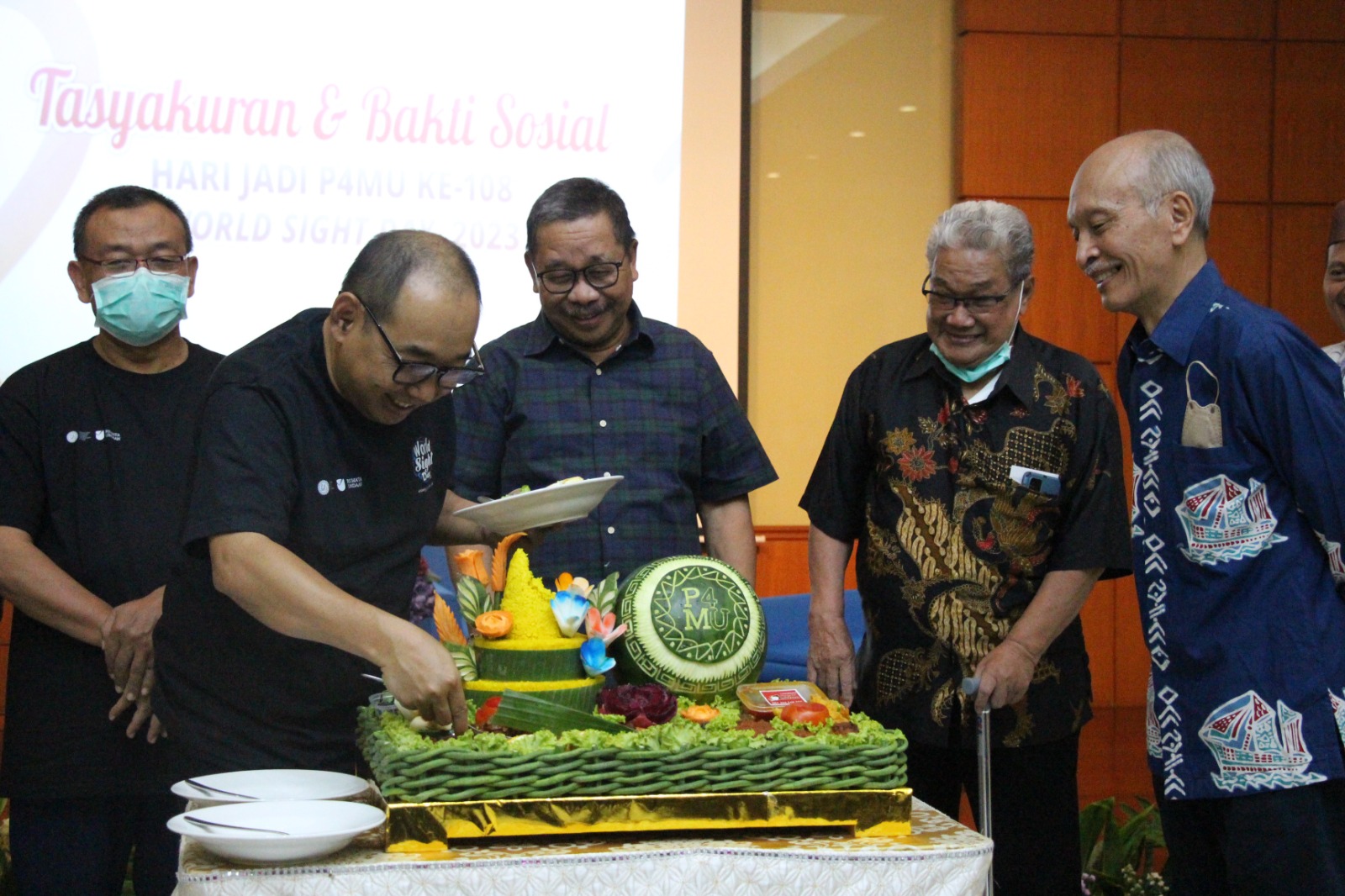 Peringatan hari jadi P4MU yang akan memasuki usia ke – 108 tahun pada 15 Oktober 2023, diawali dengan tasyakuran dan potong tumpeng. Kegiatan ini dipimpin Drs. Arif Afandi, MSi selaku Ketua Badan Pengurus P4MU, dan potongan tumpeng pertama diserahkan kepada dr. Widodo Jatim Pudjirahardjo, M.S., M.Th., Dr.Ph selaku Ketua Badan Pengawas P4MU.