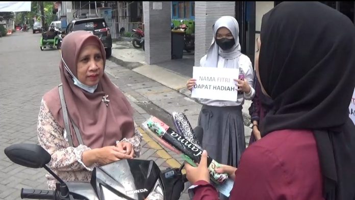 Para siswa memberikan kado berupa hijab atau kerudung kepada masyarakat maupun pengguna jalan yang melintas, khusus bagi orang yang memiliki nama Fitri. Namun, untuk membuktikan orang tersebut bernama Fitri, siswa meminta untuk menunjukkan kartu identitas atau KTP yang dibawa.