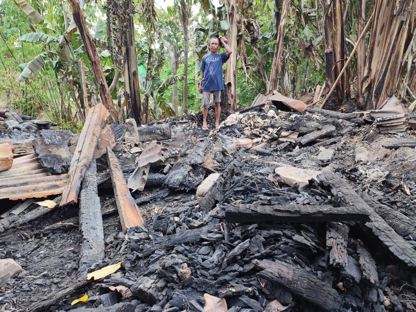 Begitu tiba, dia mendapati seluruh kandang sudah dilalap api. Indukan sapi kondisinya selamat. Sedangkan anakannya sudah terbaring dilalap api. Dia pun memotong tali yang mengikat sapi indukannya.