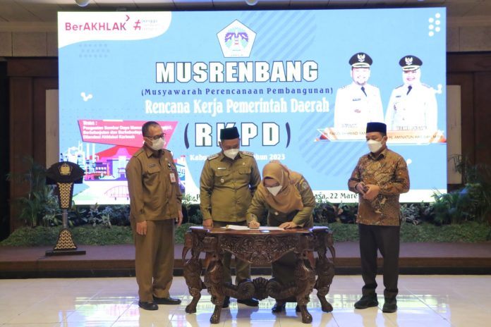Dengan mengangkat tema “Penguatan Sumber Daya Manusia yang Unggul, Berkelanjutan, dan Berkebudayaan Dilandasi Akhlakul Karimah”, kegiatan Musrenbang dilaksanalan secara daring dan luring secara bersamaan.