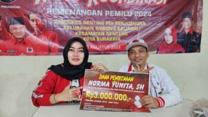 Dalam kesempatan tersebut, Norma Yunita selaku petugas partai yang duduk di DPRD Kota Surabaya, memberikan dana pembinaan kepada Pengurus Ranting dan Anak Ranting. “Saya ingin mesin partai di sini bisa melaju lebih kencang untuk melakukan kerja kerja kerakyatan demi pemenangan pemilu 2024,” jelas Norma Yunita, yang juga anggota Komisi D ini.