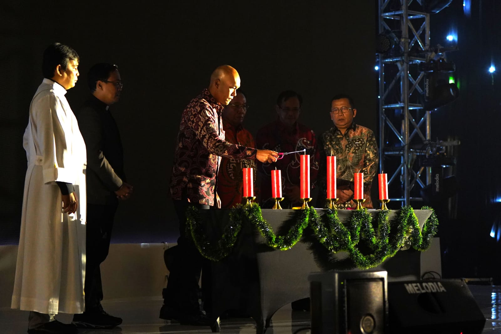 Direktur Keuangan dan Manajemen Risiko SIG Andriano Hosny Panangian saat melakukan prosesi penyalaan lilin pada acara perayaan "Natal Bersama Kementerian BUMN" Regional Surabaya. (foto/dra)