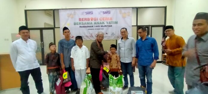 Surabaya, (pawartajatim.com) – Memasuki minggu ketiga Bulan Suci Ramadan, Serikat Media Siber Indonesia (SMSI) Kota Surabaya bersama sejumlah korposari menyalurkan bantuan sembako dan santunan ke puluhan anak yatim piatu dan dhuafa, bertempat di Aula Graha PWI Jatim, Surabaya, Sabtu (30/3/2024).