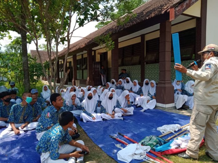 Puluhan siswa/wi SMK Negeri Winongan, Desa Bandaran, Kecamatan Winongan, Kota Pasuruan, saat sedang pelatihan aman dari bencana Jumat (2/9). (foto/ist)