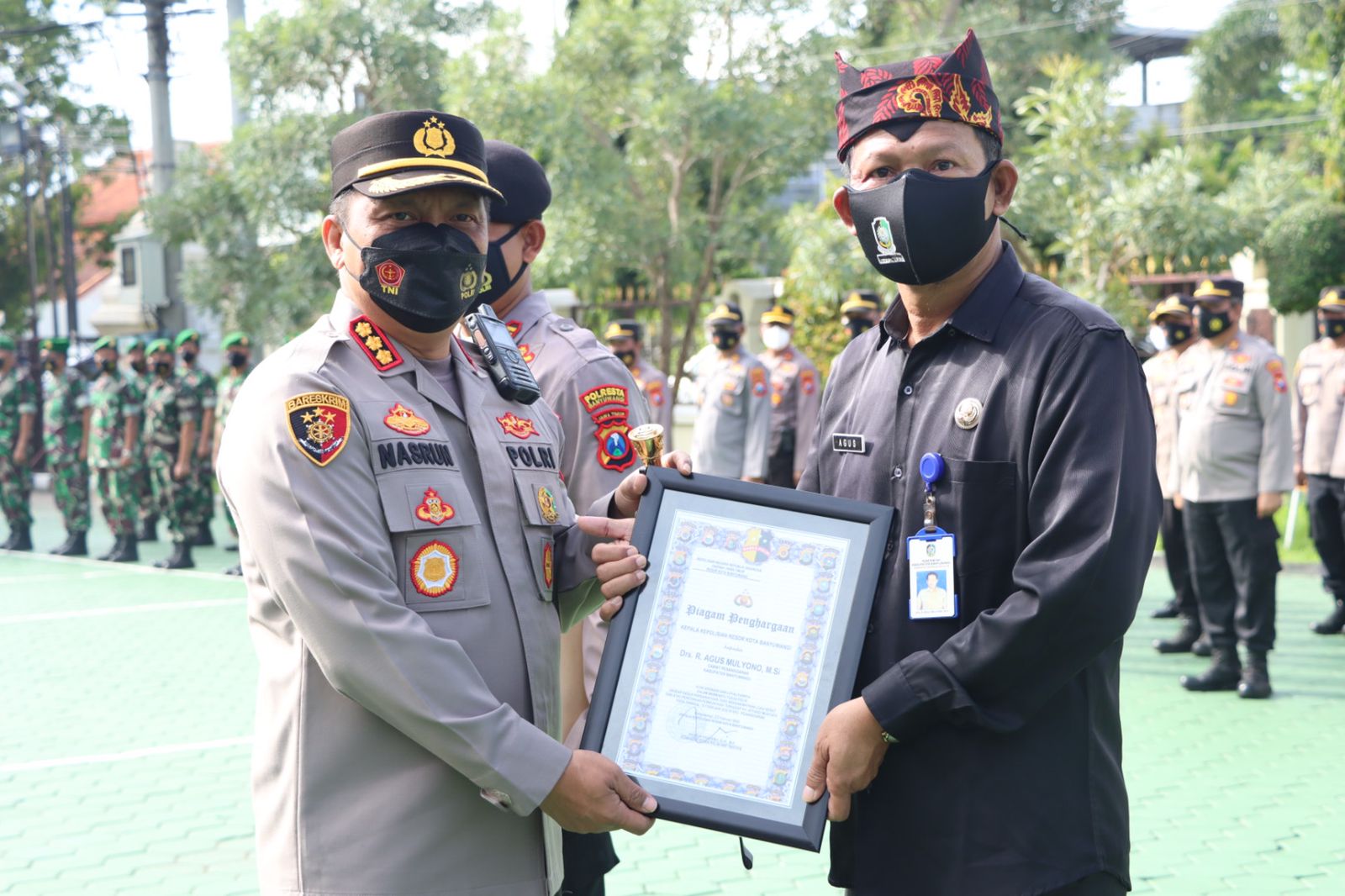 Penghargaan diberikan kepada Kapolsek Pesanggaran AKP Subandi, Danramil Pesanggaran Kapten Kav Makali, Camat Pesanggaran Agus Mulyono dan Muhammad Mansur Ma’arif, warga yang ikut membuntuti pelaku. Kekompakan keempatnya bisa menangkap Darmanto (34), pelaku penusukan pengasuh ponpes tidak kurang dari 5 jam. “ Penghargaan ini merupakan wujud apresiasi atas kinerja Forpimka Pesanggaran yang secara cepat menindaklanjuti informasi. Dan, tindakan cepat menangkap pelaku percobaan pembunuhan kepada kiai,” kata Kapolresta Banyuwangi Kombespol Nasrun Pasaribu.