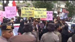 Surabaya, (pawartajatim.com) – Ratusan warga penghuni rumah dinas PT Kereta Api Indonesia (KAI) Daop 8 Surabaya di daerah Surabaya dan Sidoarjo, berunjuk rasa di depan Kantor Daop 8 Surabaya. Massa menuntut dan meminta haknya untuk tetap tinggal di tanah yang diklaim milik negara tersebut.