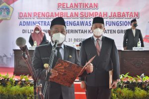 Mereka yang dilantik itu sebagai administrator, pengawas, dan fungsional di lingkungan Pemkab Gresik Jumat (31/12). Sebanyak 378 pegawai dilantik dan diambil sumpahnya secara langsung didampingi oleh pemuka agama masing-masing dihadapan Bupati Gresik.