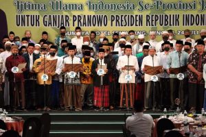 Semarang, (pawartajatim.com) – Dukungan untuk Gubernur Jawa Tengah/Jateng, Ganjar Pranowo, menjadi Presiden 2024-2029 terus mengalir dari berbagai kalangan. Kali ini, dukungan datang dari ratusan ulama, habib, hingga cendikiawan muslim se-Jateng.